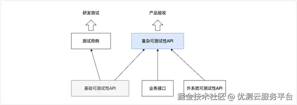 上面的分析得出,在系统内,只有为那些没有前置步骤的接口编测试用例时才需要用到可测试性API。另外,可测试性API还广泛用于产品的验收,这些可测试性API可以直接构造复杂的需求验收前置条件。前者不妨称之为基础可测试性API,后者称之为复杂可测试性API。