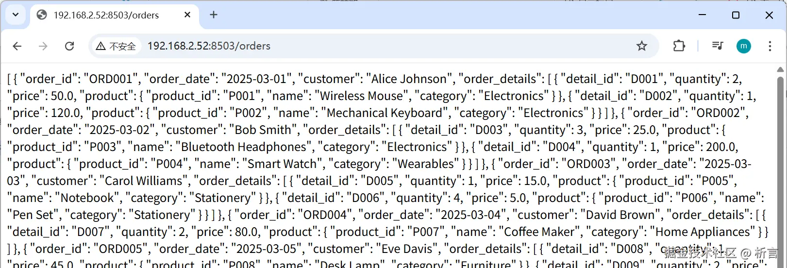 访问http://192.168.2.52:8503/orders可以获得订单数据: