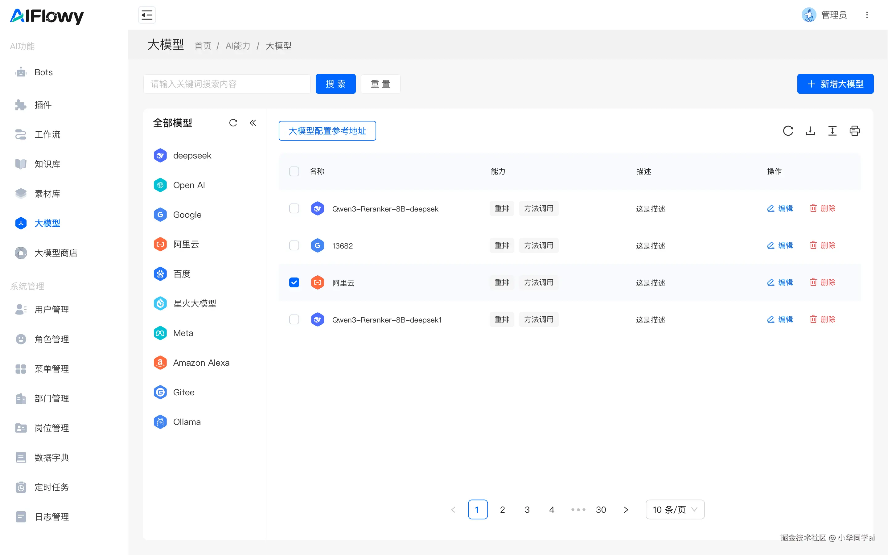 - 集成了 大模型配置与市场,统一接入主流云厂商;
