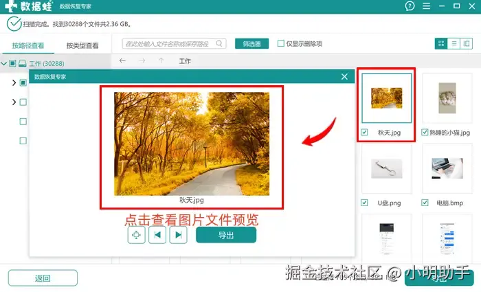所需恢复的文件中如有图片格式,则我们可以通过点击文件查看可恢复图片的内容。