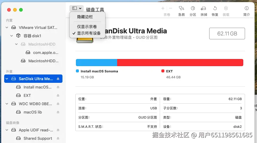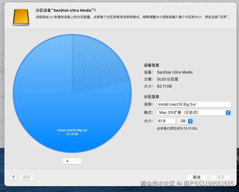 第二个安装镜像写入成功后,再次打开磁盘工具,对U盘新增分区