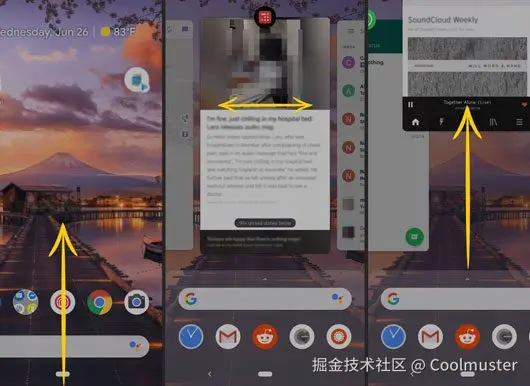 步骤 1. 在设备上向上滑动并按住显示屏即可查看您打开的应用程序。