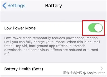 步骤2.找到“低功耗模式”,然后将其关闭。