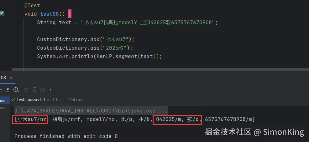 我们需要分出小米su7、2025款等词。我们分别看看用字典和不用字典的效果。