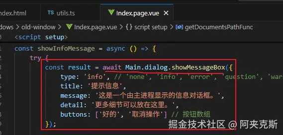 2、 书写的位置只要是script标签内即可,而无需区分主进程和渲染京城,光这一点就避免了开发者来回切换目录和文件。