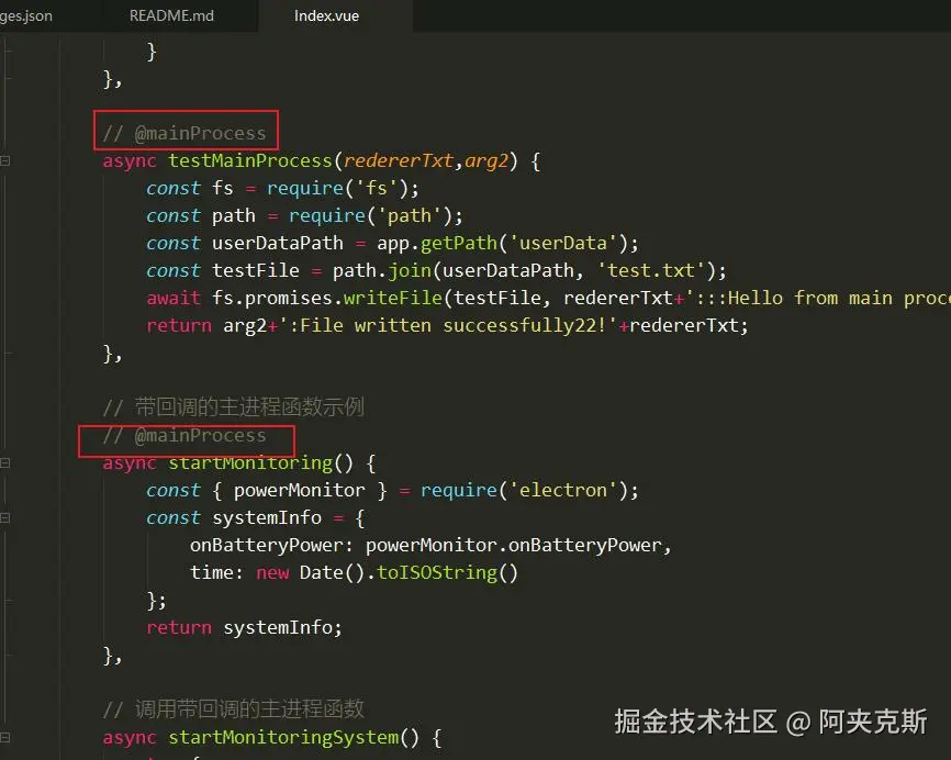 b. 以注释方式把函数(箭头函数)变主进程代码。以“// @mainProcess”进行注释,如图。