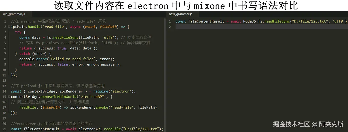 顾名思义,MixOne就是混合卸载一个地方的意思,把主进程API、Node调用、主进程插件都写在渲染进程,混合在一起,所以叫MixOne