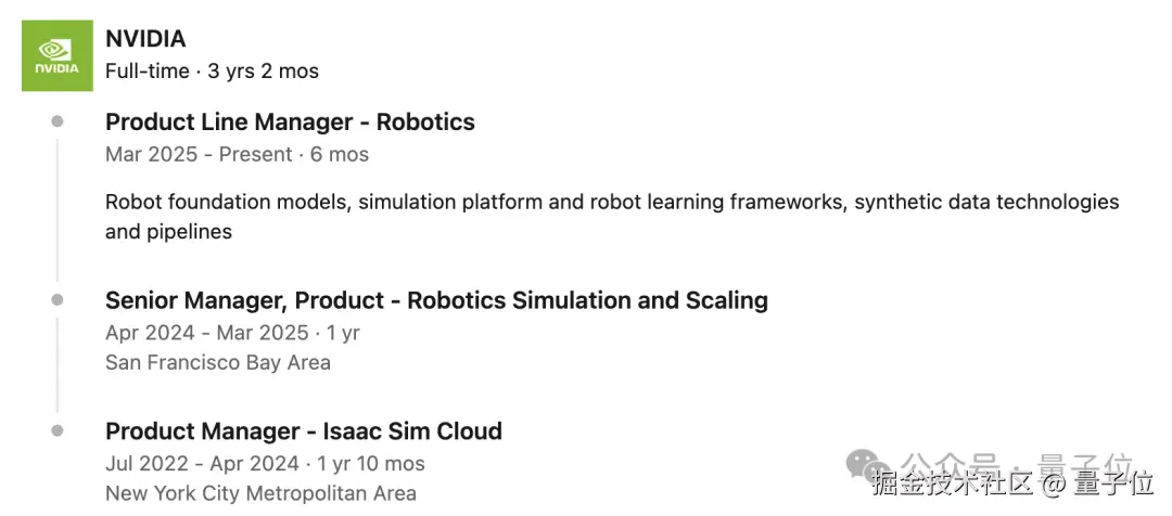 他在英伟达的职位是机器人产品线经理,负责开发用于机器人的 AI 模型与仿真软件,年薪据爆料是 53 万美元。