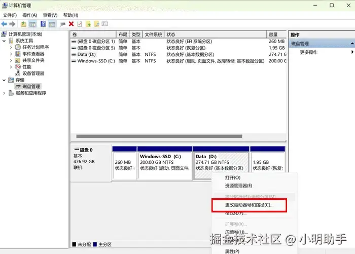 如果是因为不兼容问题才导致移动硬盘无法读取文件,我们可以在电脑的“磁盘管理”中进行相应移动硬盘的升级。硬盘读不出来怎么修复?该方法的操作参考如下: