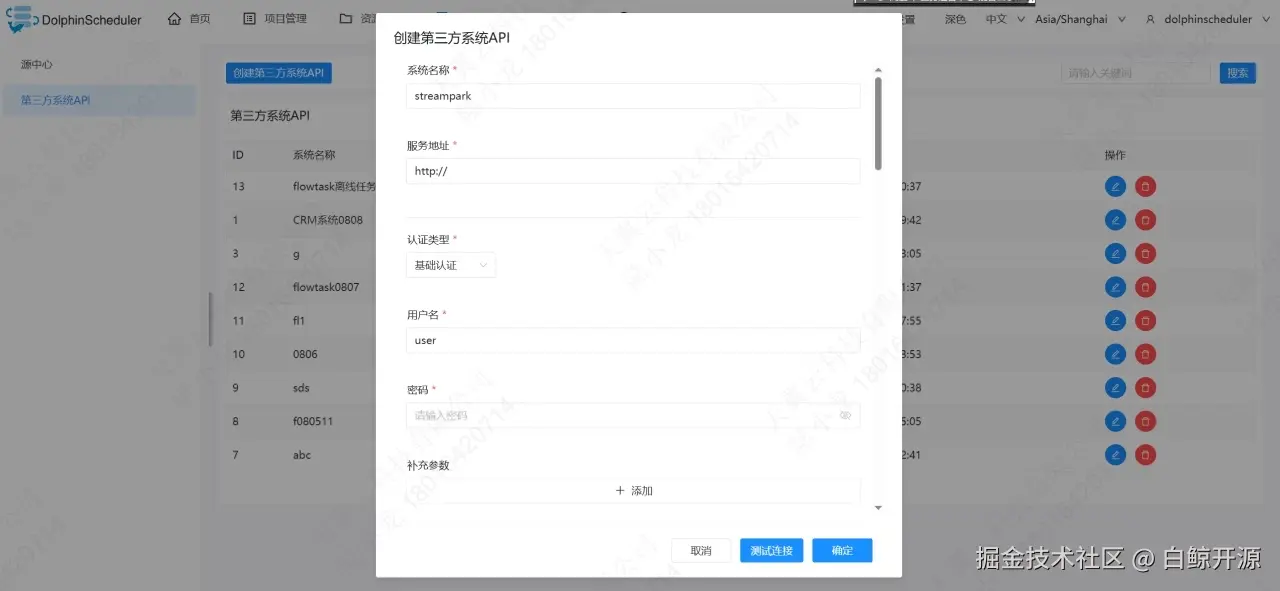 第三方任务系统集成 支持通过界面化注册接入第三方任务系统(如 Dinky、AWS EMR),并可借助 OpenAPI 直接提交任务,减少接入开发成本。
