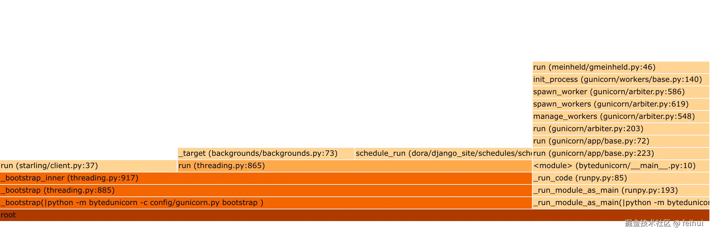 从火焰图学习流程是一个特别快接的办法,以下源码基于最新的 Gunicorn master 分支进行分析。可以看到执行流程如下: