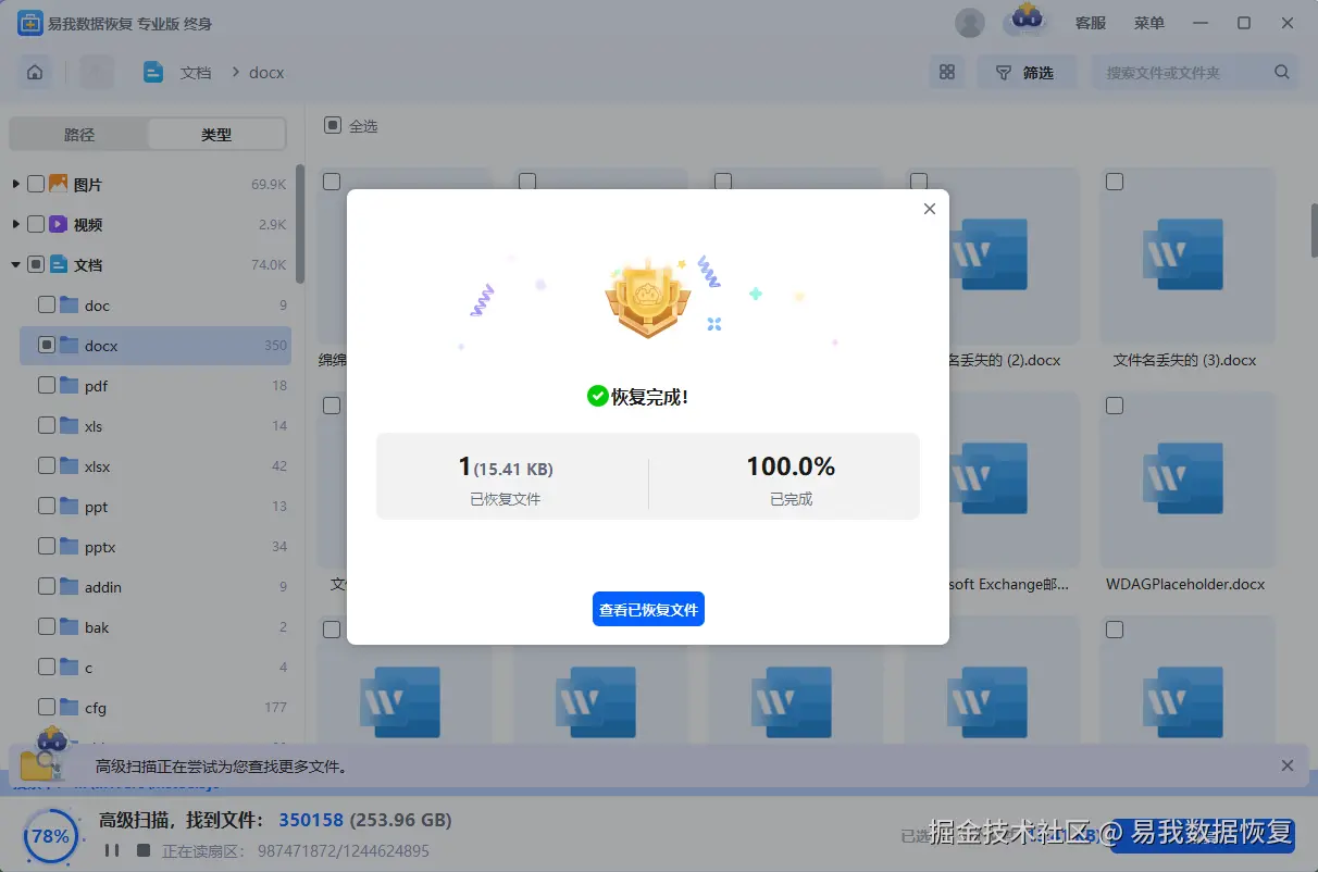 步骤4.等待文件恢复完成,可直接查看已恢复文件,以确认是自己需要找回的Steam游戏存档(如果在操作过程中有不懂的地方,可点击上方“客服”寻求免费帮助)