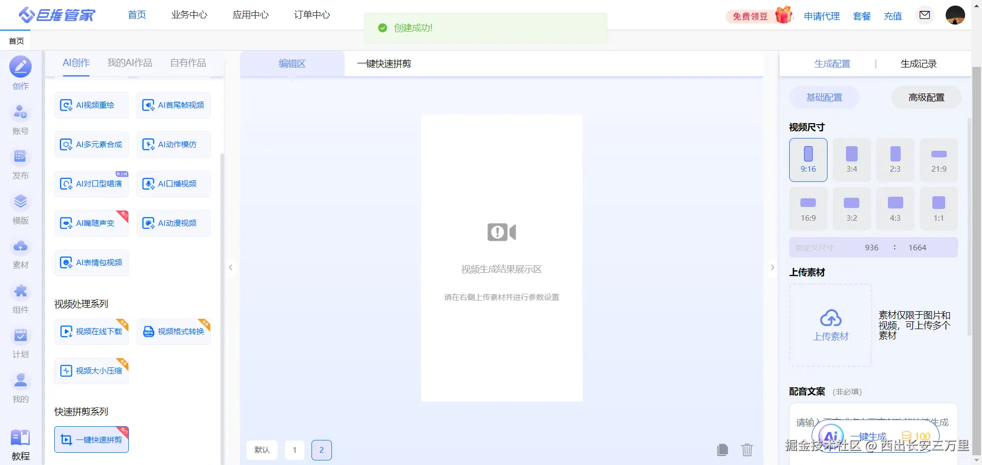 - 极简操作逻辑实时预览:生成过程中可调整画面亮度、对比度等参数免费版每天可生成6个高清视频,足以满足个人创作者需求