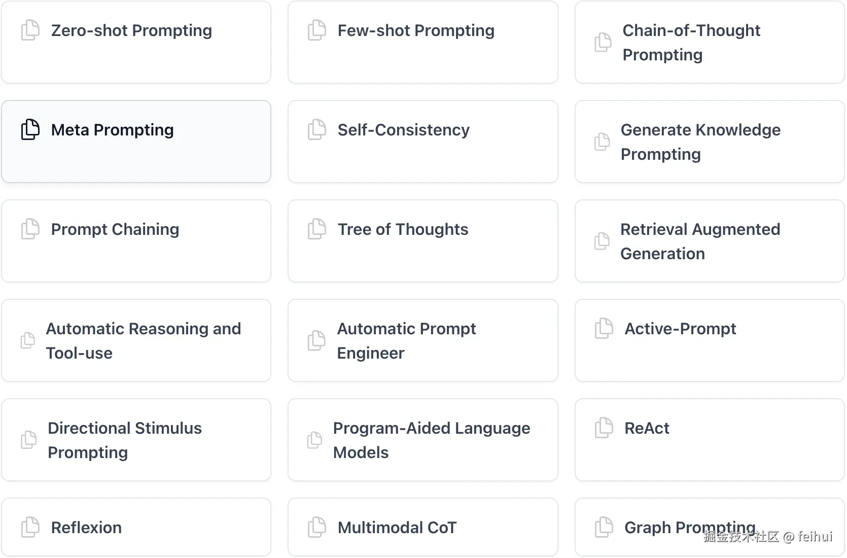 | Meta Prompting | prompt | 让模型优化/生成 prompt,概念类似元编程 | |