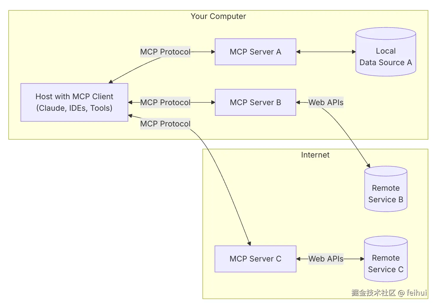 关于 MCP 的理解,推荐阅读:MCP (Model Context Protocol),一篇就够了,下面这张图很好解释 AI Agent 和 MCP 的配合: