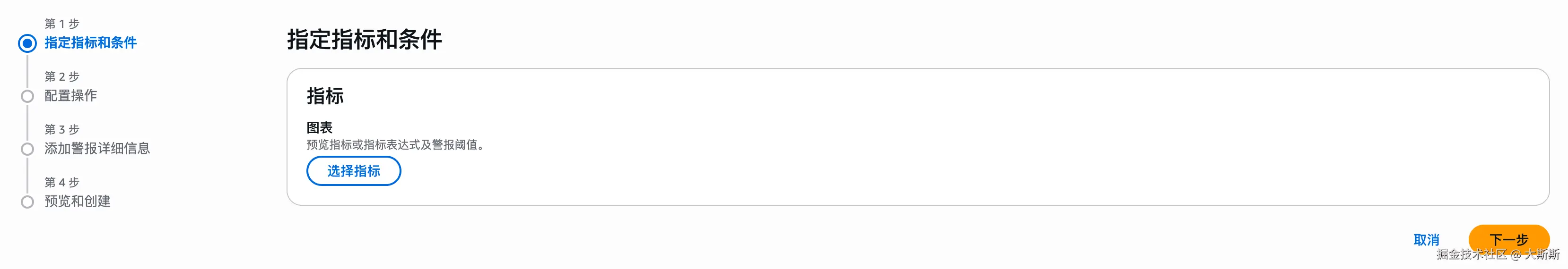 Step 2:根据步骤条的指引逐步配置指标