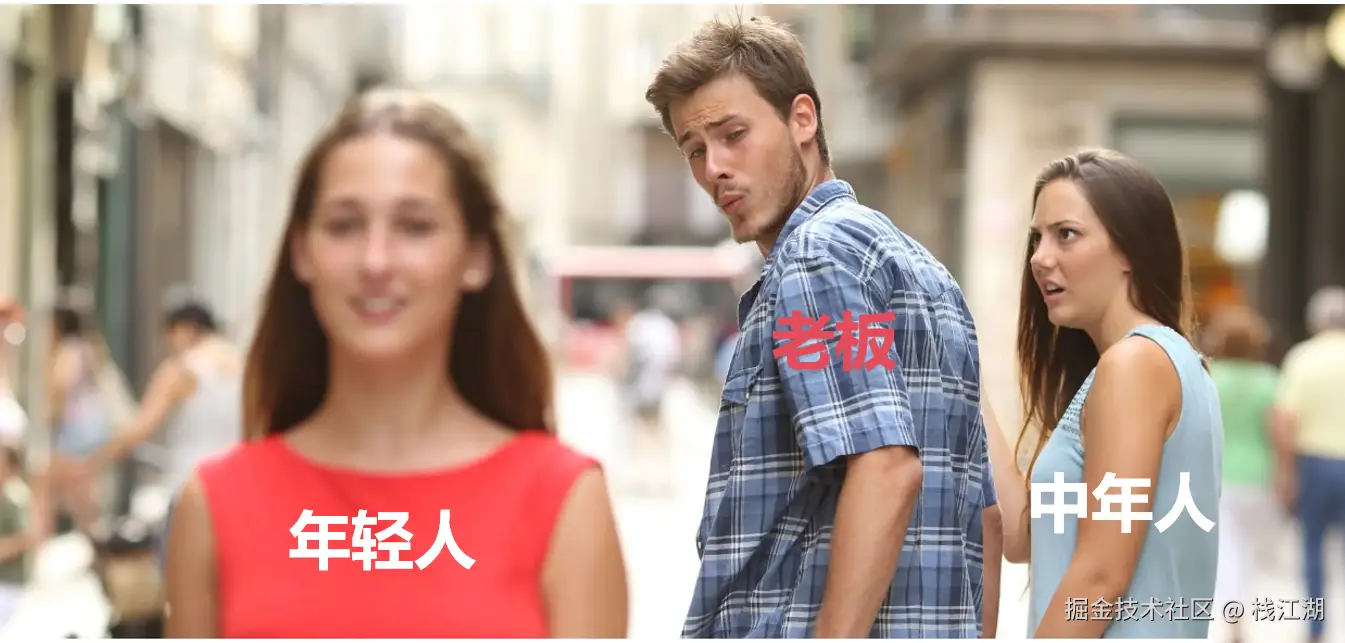 因为老板画的饼中年人都不吃,已经百毒不侵了,而年经人刚入职场不久还可以吃一段时间,老板们更青睐年轻人。