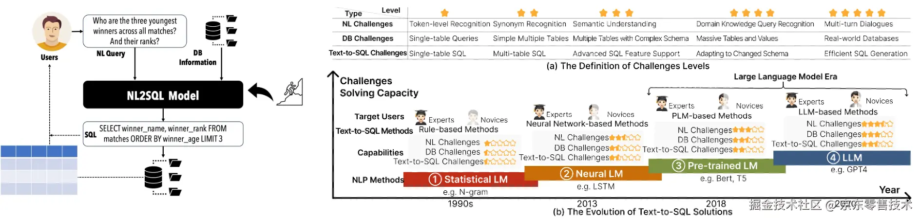1. 基于规则阶段:早期的Text2SQL方法主要依赖于基于规则的统计语言模型,主要聚焦于单表查询,理解能力仅限于词元阶段;