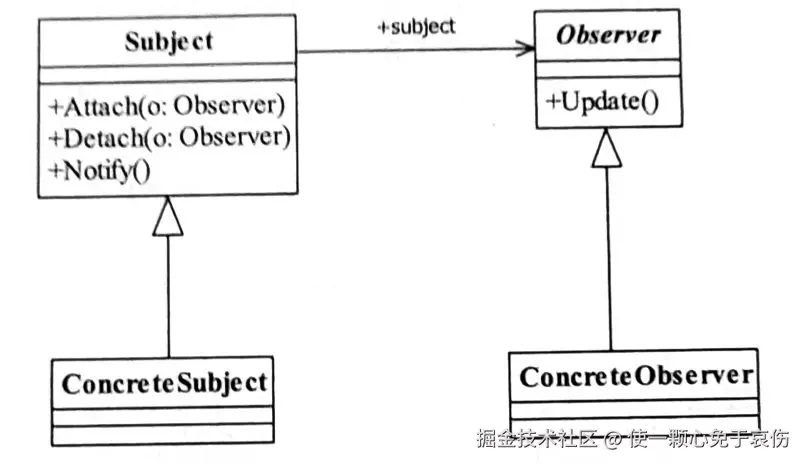 观察者模式的通用类图,如图所示。