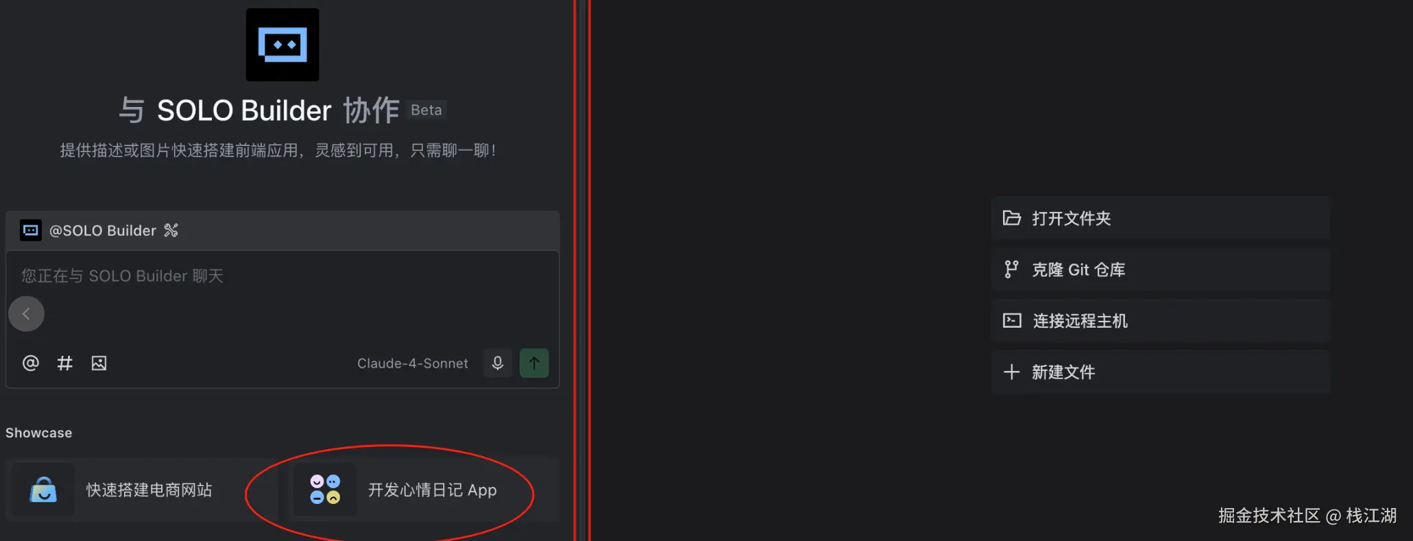 - 通过SOLO Builder 智能体快速搭建美观的前端应用,实现便捷的端到端开发流程。