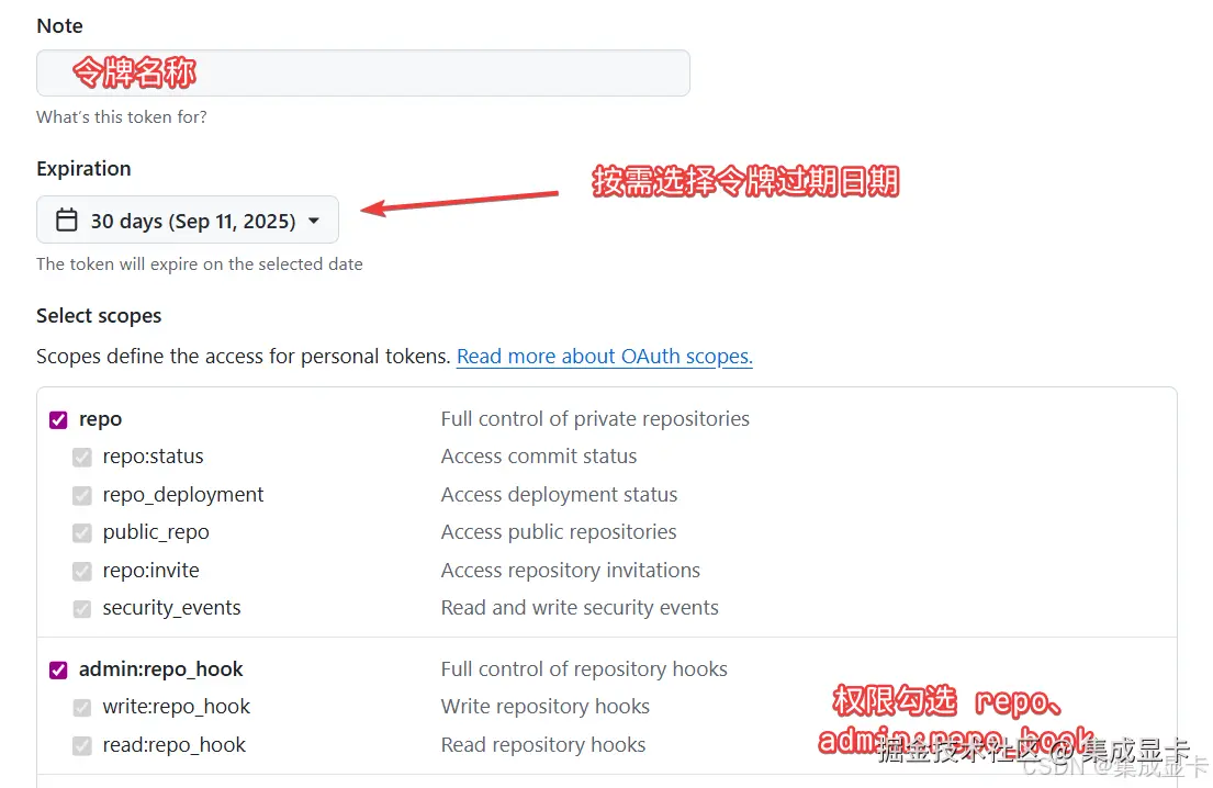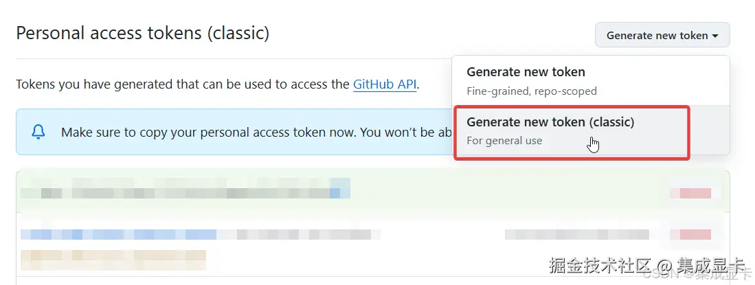 接下来,我们需要到GitHub令牌生成用于仓库同步的令牌。注意,请使用classic模式创建令牌:
