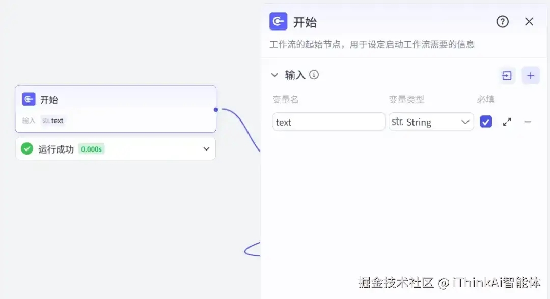 开始节点定义input参数接收小说文案,建议测试阶段选取20段文本