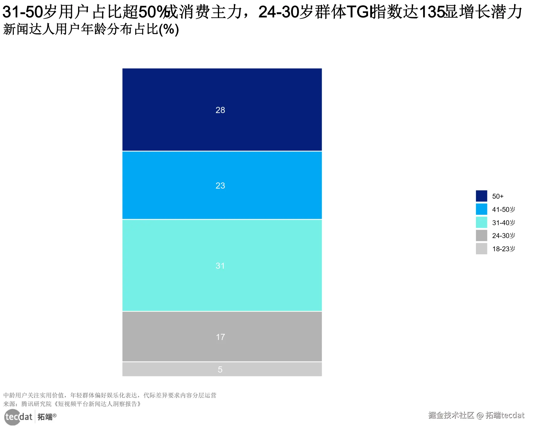 用户年龄分布图表(T1-3)藏着破局密码:31-50岁用户占比超50%,但24-30岁群体TGI达135。这意味着,抓住年轻人,就是抓住未来的流量红利。