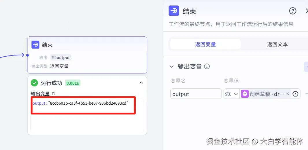 最后将视频合成的地址返回。这里的地址是剪映草稿id。
