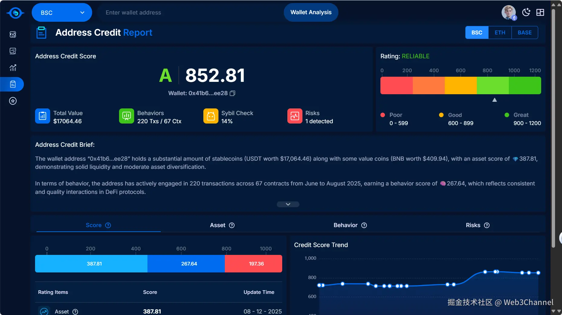 据悉,其链上信用分析 DApp 已正式上线,面向全球用户开放试用,为行业提供了一种兼顾深度分析、批量处理与智能洞察的新方案。