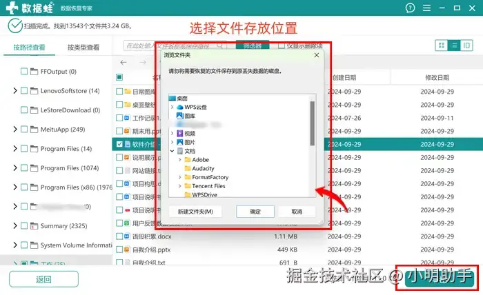 步骤3: 最后还需要在【浏览文件夹】中选择文件的存放位置。