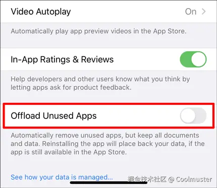 步骤 2. 启用“卸载未使用的应用程序”选项。