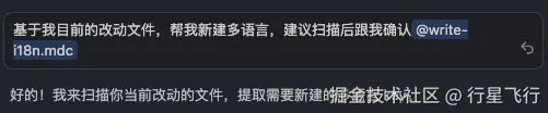 需要注意的是,ts 文件中可能会存在多语言枚举的 key 配置,有时我们也会直接在 ts 方法里直接调用 domain 的 intl 使用多语言,目前 AI 对于这种复杂场景只能说尽可能去实现,在 AI 做完自查替换后,还是需要大家人为检查是否有多语言是重复可复用的,是否有无用 key 的情况,但可以确定的是,本流程的确能帮助大家节省大量新建 key 或自己替换 key 的时间。