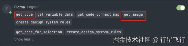 figma mcp 支持多个 tools,比较常用的是 image 和 code,前者类似于让 AI 直接通过截图的方式阅读设计稿,能了解大概但不够精细,后者属于直接阅读设计稿的代码,精准度更好。