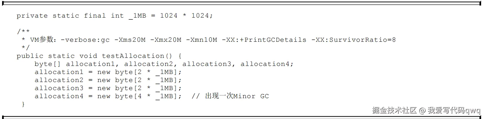 通过分析这段代码的运行结果来得出对象优先分配在eden区