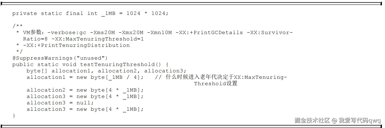 以上面的测试结果为例,当这个函数设置为1时,在进行第二次Minor GC的时候,新生代里的404K被转移到老年代了;当这个函数设置为15时,第二次Minor GC的时候有404K没有被转移到老年代。
