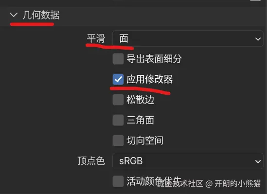 几何数据,平滑改为面,勾选应用修改器,之后点击导出即可。