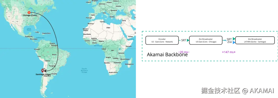 芝加哥至圣地亚哥通过Akamai分布式计算区域:
