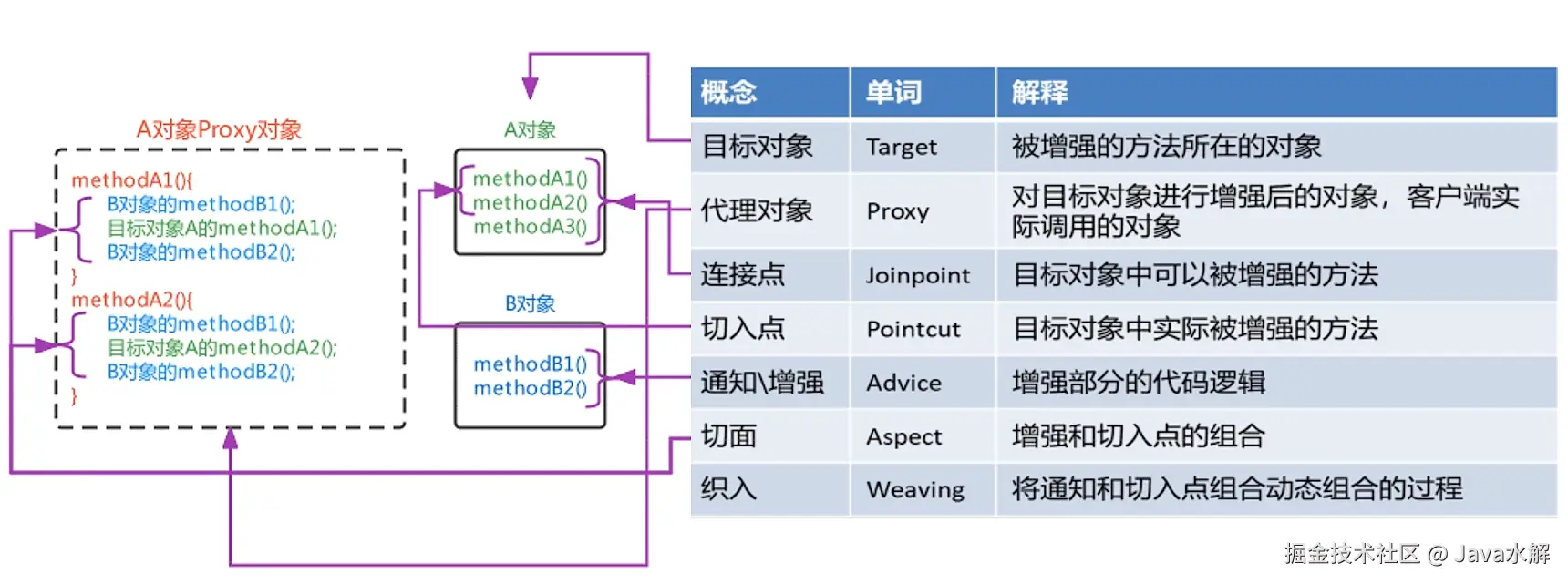 A对象是目标对象,B对象是增强对象