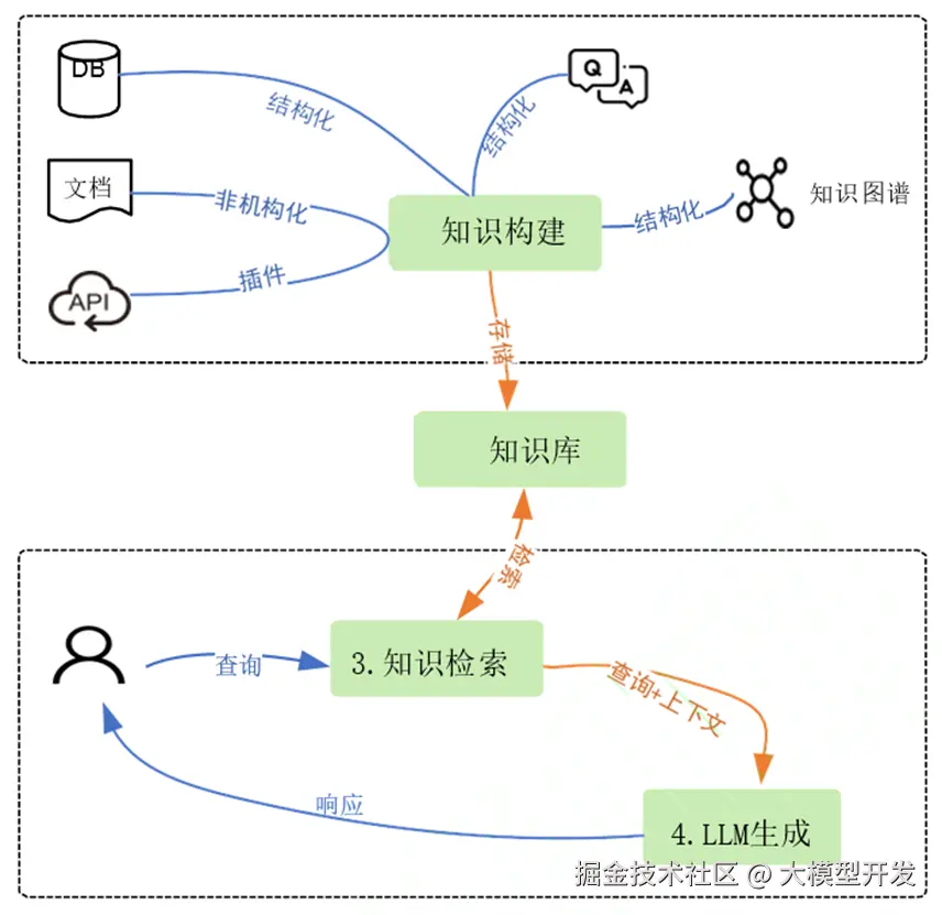 领域知识构建是知识库问答系统的核心部分,负责将原始知识数据转化为易于存储和检索的结构化知识,并存入知识库。构建的知识库质量决定了 RAG 的检索问答效果。