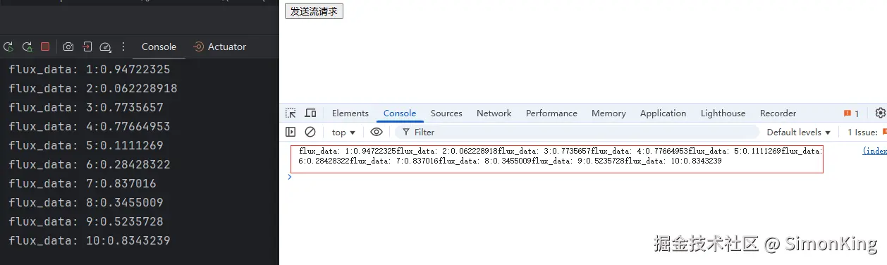 第一张图中并没有打印数据,而是等全部流数据完成之后才会打印展示。前端处理的话,同样等到数据处理完成才能渲染。