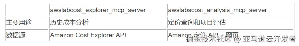 这两个成本相关 MCP 服务器对比如下: