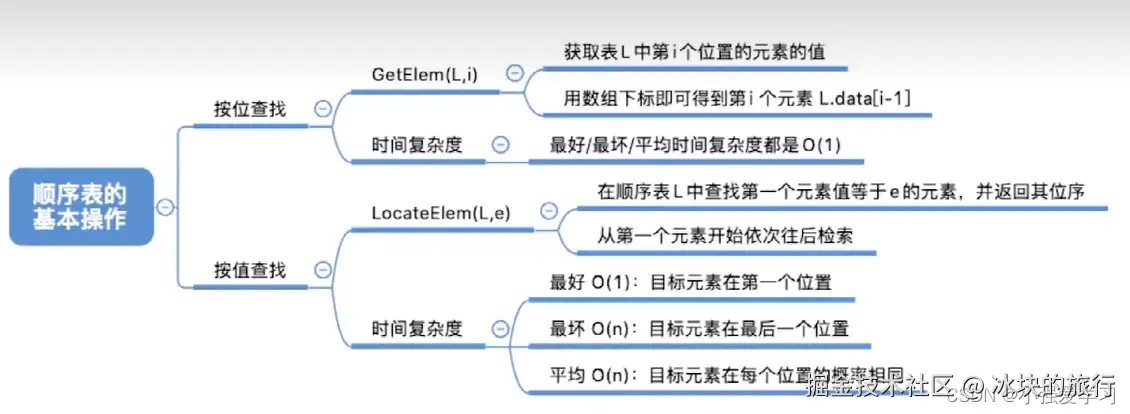 - GetElem(L,i): 按位查找操作。获取表L中第i个位置的元素的值。