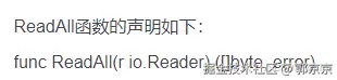 该函数接收一个实现了io.Reader接口的参数r,并将从r中读取的所有数据返回为字节切片。返回的字节切片即为文件的完整内容,读取操作完成后,ReadAll函数会自动关闭r。