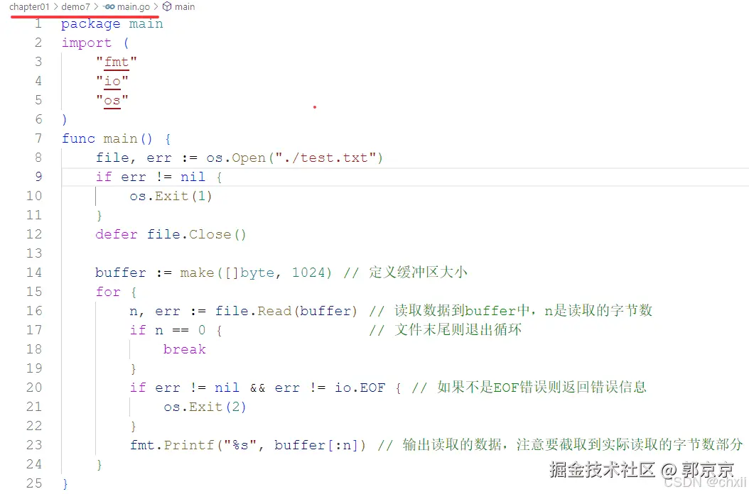 如果需要多次执行写入文件的操作,推荐使用 bufio 里的 Writer 结构体去操作,它会开辟一个缓冲区,默认大小为 4096 字节。在数据没有被刷入磁盘之前,所写入的数据都会暂时保存到缓冲区里。