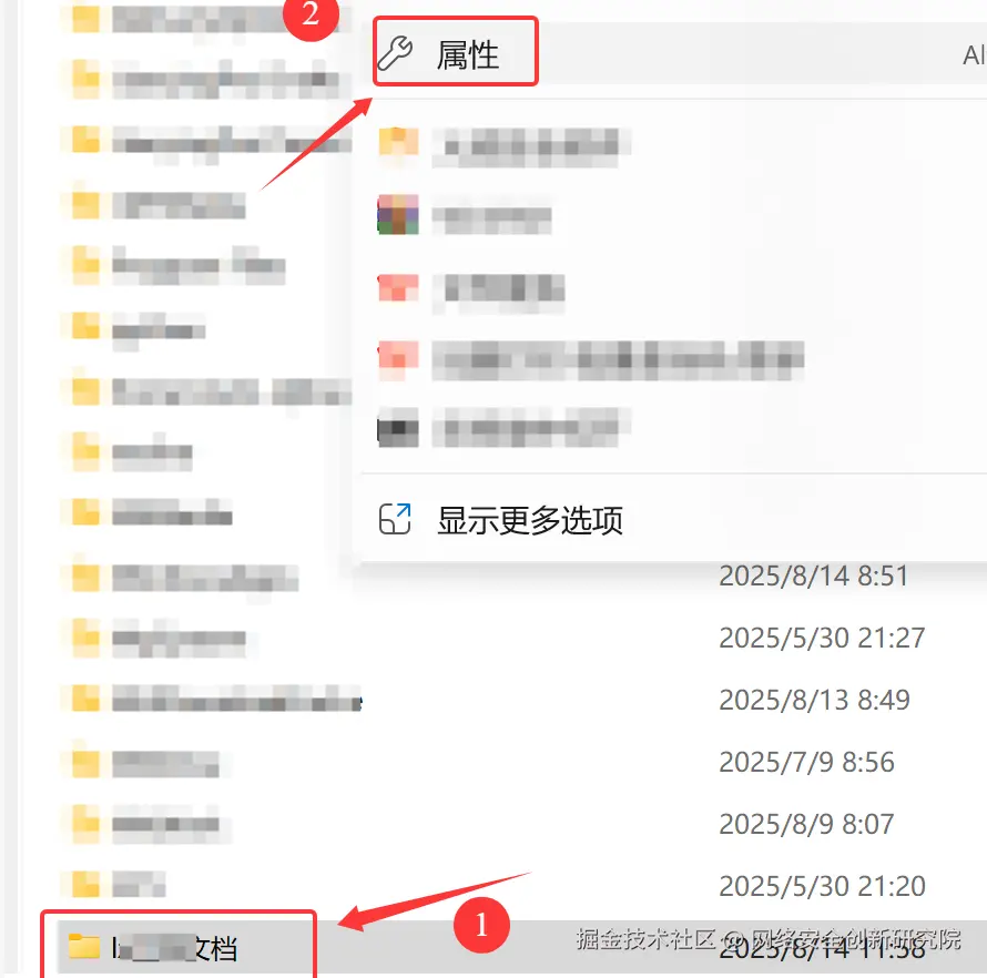 在公司服务器 Work PC 上,找到你准备共享的文件夹,右击文件夹,点击"属性"。