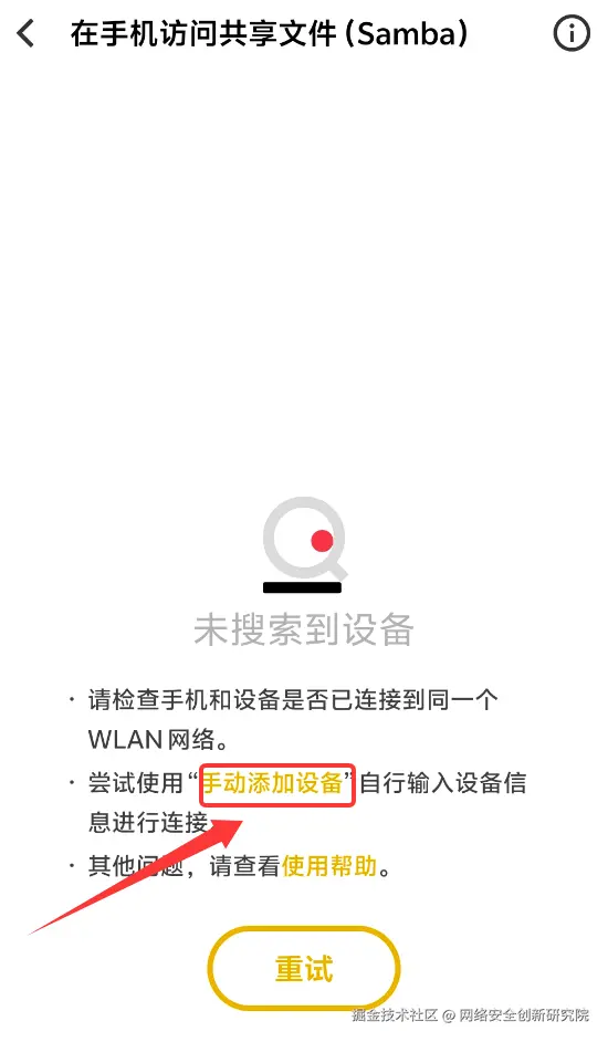 进入页面后,如果没有设备,点击"手动添加设备"。