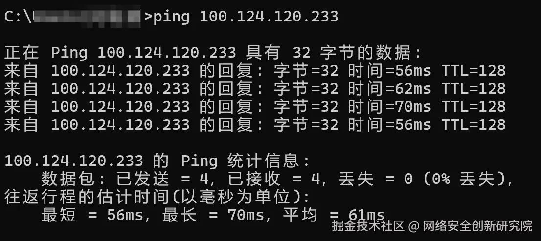 当访问设备(家里电脑 Home PC)和被访问设备(公司电脑 Work PC)均登录飞网并加入同一网络后,可通过 ping 命令测试连通性。