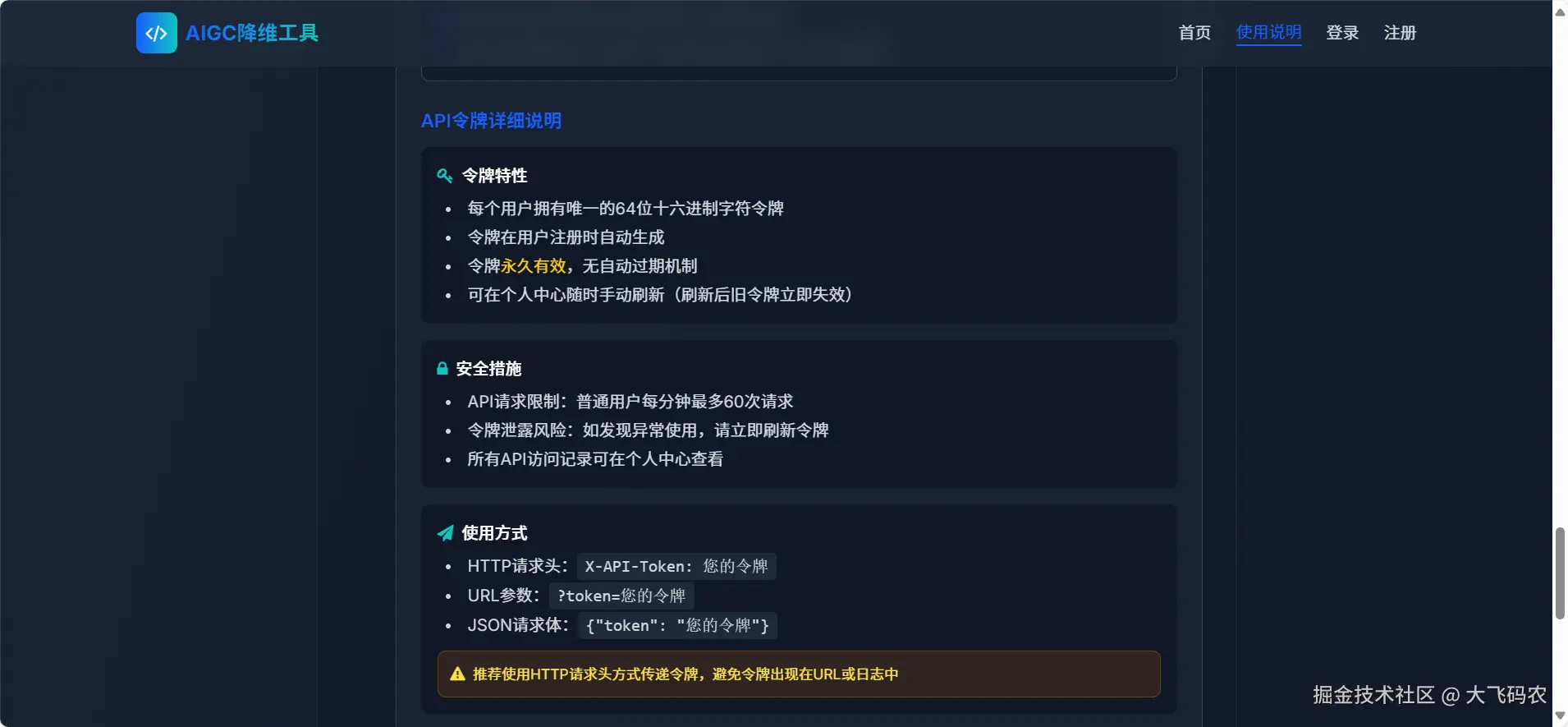 该工具还支持API方式访问: 注册登录后就可以在个人中心看到自己的token,拿着这个token就可以访问API,自己封装需要的工具了