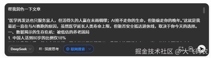 想一想,你写文章的初衷就是为了通过朱雀的检测吗,我们输出的价值需要AI来衡量吗,还是说AI已经开始支配我们的评判标准了呢?欢迎评论区来聊一聊。
