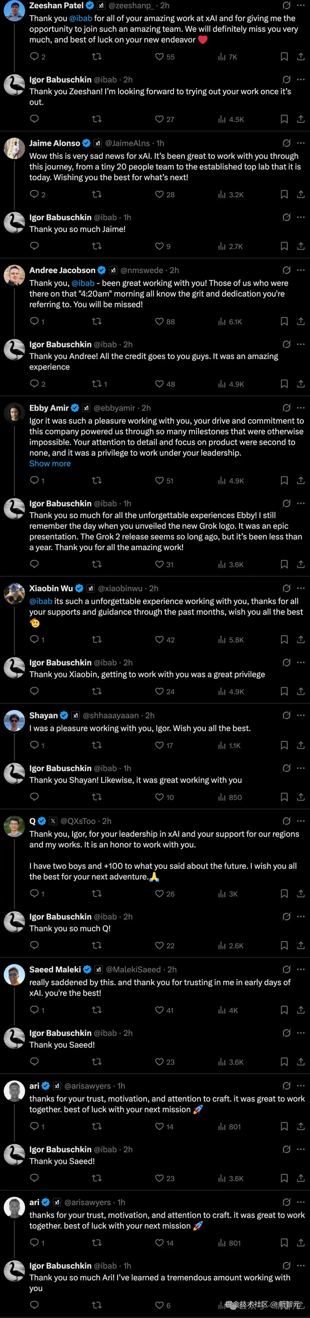 Igor 长文下,一大波 xAI 员工与他告别,向他以往的贡献致敬。